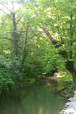 Kiah Creek originates in Lincoln County. Its largest tributaries are Francis Fork/Creek, Rollem Fork, Trough Fork, Big Laurel Fork, and Cove Fork/Creek. Its entire headwaters are located in Lincoln County, while its lower regions lie in Wayne County.