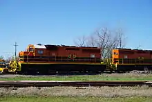 Kiamichi Railroad EMD SD40-2s #3378 and #3379 in Hugo, Oklahoma