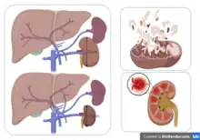 Kidney ischemia[1] is a disease with a high morbidity and mortality rate.[2] Blood vessels shrink and undergo apoptosis which results in poor blood flow in the kidneys. More complications happen when failure of the kidney functions result in toxicity in various parts of the body which may cause septic shock, hypovolemia, and a need for surgery.[3] What causes kidney ischemia is not entirely known, but several pathophysiology relating to this disease have been elucidated. Possible causes of kidney ischemia include the activation of IL-17C and hypoxia due to surgery or transplant. Several signs and symptoms include injury to the microvascular endothelium, apoptosis of kidney cells due to overstress in the endoplasmic reticulum, dysfunctions of the mitochondria, autophagy, inflammation of the kidneys, and maladaptive repair.