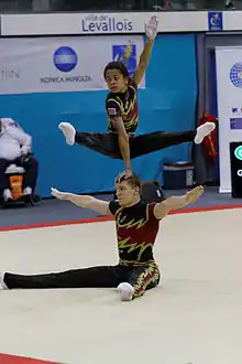 - ↑ "Results of the 2014 Acrobatic Gymnastics World Championships" (PDF). International Federation of Gymnastics. Retrieved 25 July 2014.