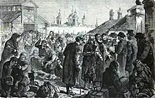 The Kiev pogrom of 1881 lasted for three days. It began on 26 April (7 May), 1881 in the city of Kiev itself and spread to villages in the surrounding region. Sporadic violence continued until winter. The Kiev pogrom is considered the worst of the pogroms that swept through south-western Imperial Russia in 1881.[1] Pogroms continued on through the summer, spreading across the territory of modern-day Ukraine including Podolia Governorate, Volyn Governorate, Chernigov Governorate, Yekaterinoslav Governorate, and others.[2] Notably, the tsarist authorities made no attempt to stop it.[3] However, in his detailed study Russians, Jews and the Pogroms of 1881-1882, John D. Klier, professor of modern Jewish History at University College, London who spent almost his entire academic life researching Jewish life in Russian controlled territory, came to the conclusion that, far from passively allowing the pogroms to take place, the Tsarist government actively and repeatedly issued orders to the police, and military to suppress them. They also published proclamations forbidding anti-Jewish riots.[4]