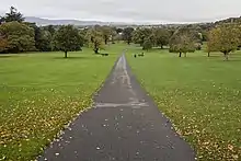The park was originally known as The Meadow and formed part of the large Ross Family estate in Rostrevor from the early 1700s – their house, known as The Lodge was built in 1716.[1][2] One of the more famous members of that family was General Robert Ross, who served in the British Army during the Napoleonic Wars and was responsible for the burning of the White House in the War of 1812.[1] The Ross family were responsible for planting many of the non-native trees that are still found in the area including redwood, Monterey pine, holm oak, ash, sycamore and cherry.[2][1] The park was purchased by Colonel Roxburgh in 1850; William Makepeace Thackeray is thought to have visited at around this time and drawn inspiration from the landscape.[2][1] Thackeray remarked that had the estate been located in England it would be widely regarded as "a world's wonder".[1]