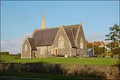 The first mention of the Parish of Killaney was in an 1194 charter granted by John de Courcy. A church and graveyard were built near Bow Lough. In the Irish Rebellion of 1641 the church was badly damaged and never rebuilt, although the graveyard remained (at grid ref: J357580). From then until the mid-19th century, appointments were still made to the parish, despite the lack of a church. In 1865 land was donated by the Marquess of Downshire for a church which was completed in 1867 and named for St. John the Evangelist. In the early 20th century the church became St. Andrews, the Church of Ireland parish church for Killaney (at grid ref: J359594).[3] The church bell was a gift from St Patrick's Cathedral, Dublin.[4] It is situated in the townland of Carrickmaddyroe.[5]