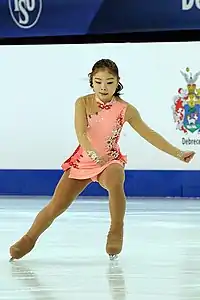 Kim placed fourth in August 2015 during a Korean competition to select skaters for the ISU Junior Grand Prix (JGP) series.[1] She made her JGP debut in September, finishing 13th in Colorado Springs, Colorado.[2] She placed 7th in senior ladies at the 2016 South Korean Championships and was named in Korea's team to the 2016 World Junior Championships in Debrecen. Ranked 12th in the short program and 9th in the free skate, she finished 9th overall in Hungary.