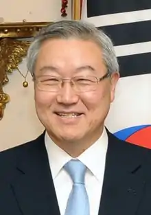 Kim Sung-hwan (born 13 April 1953) was the Republic of Korea’s Minister of Foreign Affairs and Trade from 8 October 2010 to 24 February 2013. His previous positions include Vice Minister of Foreign Affairs and Trade (from March 2008) and Senior Secretary to the President for Foreign Affairs and National Security (from June 2008).