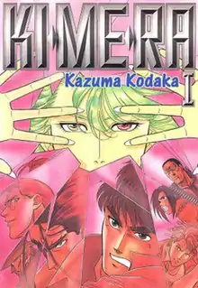Kimera (キメラ, lit. "Chimera"), stylized as Ki*Me*Ra, is a two-volume manga series written and illustrated by Kazuma Kodaka and serialized in Magazine ZERO. It was adapted into a single episode original video animation by Toho in 1996. Both the manga and OVA were licensed and released in English by ADV Films. It focuses on a man named Osamu, who falls in love with an androgynous vampire-like man named Kimera, being held by the Air Force and hunted by two other vampires.[1] One vampire wishes to use Kimera for his/her hermaphroditic nature as the mother to revive their dying race, while another wishes to kill Kimera to save him/her from a fate Kimera did not desire.