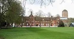 In 1828 the Wilkins building on the south side of the court opposite the chapel was opened and the school was housed in rooms within it.[3] By the 1870s in response to improving musical standards in other English choirs, it was decided to open a boarding house to accommodate choristers from outside Cambridge in order to widen the field from which selection of choristers could take place. This was opened on the current site in West Road in 1878, and by 1880 all 16 choristers were boarders, and there were also 8 non-chorister day pupils, a number that would gradually increase over the coming decades.[3] From 1976 girls were admitted, and as the school expanded, it opened a pre-preparatory department.[6]