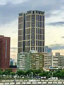 King's Town Hyatt (Chinese: 京城凱悅; pinyin: Jīngchéng Kǎiyuè) is a 35-story, 137 m (449 ft) tall residential skyscraper located in Qianjin District, Kaohsiung, Taiwan.[1] Construction of the skyscraper began in 2005 and it was completed in 2009.[2] Designed by the Hong Kong based architectural firm P&T Group, the residential building provides 174 units of luxury apartments, with facilities such as a swimming pool, banquet hall, fitness center and a sky lounge on its topmost floor.[3][4] As of December 2021, it is the 23rd tallest building in Kaohsiung.[5][6]