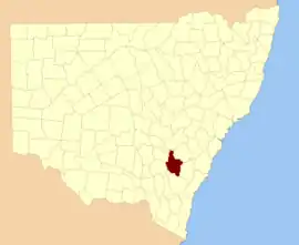 King County was one of the original Nineteen Counties in New South Wales and is now one of the 141 cadastral divisions of New South Wales. It is in the area to the east of Yass. The northern part of it lies between the Lachlan River and the Boorowa River, including the locations of Frogmore, Taylors Flat, Gunnary, Rugby and Rye Park. The Crookwell River is also part of the northern boundary. The Yass River is the southern boundary.