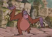 King Louie is a fictional character introduced in Walt Disney's animated musical film The Jungle Book. He is an orangutan who leads other jungle primates and wants to become more human-like by gaining knowledge of fire from Mowgli. King Louie is an original character not featured in Rudyard Kipling's original works.