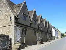 Near the south end of the main street, Home Farmhouse is late 17th or early 18th century.[28] Further north, a row of six almshouses was built in 1675 for Isaac Lyte of Easton Piercy.[29]