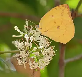 Common Emigrant (Catopsilia pomona) on Ixora brachiata
