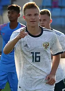 After playing in four friendlies for Hrvatski Dragovoljac, he was recalled from loan and on 20 August 2021 he joined FC Nizhny Novgorod on loan instead.[6] He reunited with Aleksandr Kerzhakov, who was his manager at Tom Tomsk in the previous season. He scored his first Russian Premier League goal for Nizhny Novgorod on 7 November 2021 in a game against FC Akhmat Grozny.[7]