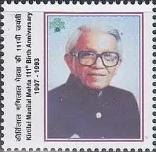![]() Kirtilal M. Mehta on Indian postage stamp, 2018 | |