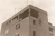![]() The apartment building in the aftermath of the attack | |