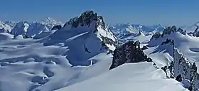 Klawatti Peak (8,485 feet (2,586 m)) is located in North Cascades National Park in the U.S. state of Washington.[4] Klawatti Peak is a nunatak, a peak surrounded by glaciers. These are Klawatti Glacier to the east, McAllister Glacier to the northwest and Inspiration Glacier to the south.