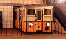 Preserved historic train car at north end of platform