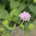 Knautia drymeia is known as a very morphologically variable species.[7] The species' subspecies can be recognized by their vegetative parts, especially their leaves' characteristics. In subspecies drymeia stem leaves are ovate to ovate-lanceolate in shape, while basal leaves have whiteish bristles. On the other hand, subspecies intermedia can be determined by yellowish bristles of basal leaves, while its stem leaves are either oblong either lanceolate. Subspecies tergestina has similarly coloured bristles of basal leaves as ssp. drymeia (white to gray), but its stem leaves are round to widely ovate and deeply serrated.[3]