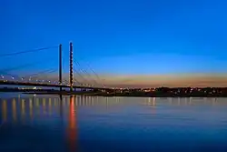 The Rheinkniebrücke (English: Rhine knee bridge) is a cable-stayed bridge leading over the Rhine at the Rheinknie in Düsseldorf with a six-lane motor road and two combined pedestrian and cycle paths, which was opened to traffic on 16 October 1969.[1]