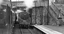 Trains meet at Knighton Station in 1962