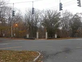 The ruins of the mansion's gardens and grounds are now part of the Muttontown Preserve, with the gated entrance located on Jericho-Oyster Bay Road (Route 106).