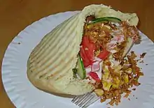 Knysza ([ˈknɨʂa]) is a type of fast food, consisting of a bread roll amply filled with a variety of ingredients. The bread is a sliced-in-half sponge cake (bułka drożdżowa), sometimes grilled prior, abundantly infilled with a variety of ingredients, including vegetables, cutlet, topped profusely with sauce.[1]