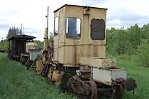 The Kobrinskaya forestry railway's first line was constructed in 1946, in the area of Murashinsky District, Kirov Oblast from the village Bezbozhnik. The total length of the Kobrinskaya narrow-gauge railway at the peak of its development exceeded 150 kilometres (93 mi), of which 80 kilometres (50 mi) is currently operational. The railway operates scheduled freight services from Bezbozhnik, used for forestry tasks such as the transportation of felled logs and forestry workers. In 1992, as a result of privatization "Mayskiy timber industry enterprise", there was founded JSC "Mayskles" company.[2] In 2014, repairs are being made to the track.[3]
