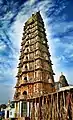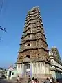 There are intricately carved statues depicting scenes from Ramayana, Mahabharata, and Bhagavatam on the four sides of the gopurams in each floor. The Sikhara of the temple is carved with statues depicting Bala Ramayana (childhood of Rama).[2] Devotees can reach the top storey of the gopurams through a 300-step climb.