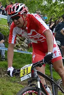 Kohei Yamamoto (山本幸平, Yamamoto Kōhei, born 20 August 1985 in Makubetsu, Hokkaido) is a Japanese cross-country mountain biker.[1] At the 2008 Summer Olympics, he competed in the men's cross-country, finishing in 46th place.[2] At the 2012 Summer Olympics, he competed in the Men's cross-country at Hadleigh Farm, finishing in 27th place. He rides for the Specialized Racing MTB team.[3]