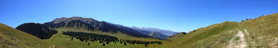 To climb the Kok-Zhaylau is necessary to make an ascent on the Northern watershed of the gorge. This route is very popular due to the fact that during one day from the Kok-Zhailau plateau, you can make different hikes: 1) on the Terisbutak river, make a descent to The Big Almaty gorge[5]– to the city along the "Observatorsky comb"; 2) along the Kamenskiy ridge to the health resort "AK Kain" through the Maloalmatinsky and Kamenskoye gorges, etc.
