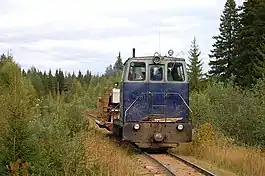 The Konetsgorskaya forestry railway's first line was constructed in 1942, in the area of Vinogradovsky District, Arkhangelsk Oblast from the village Rochegda.[2] The total length of the Konetsgorskaya narrow-gauge railway at the peak of its development exceeded 153 kilometres (95 mi), of which 80 kilometres (50 mi) is currently operational. The railway operates scheduled freight services from Rochegda, used for forestry tasks such as the transportation of felled logs and forestry workers.[3] In 2015, repairs are being made to the track.[4]