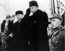 Konstantin Päts[lower-alpha 2] (23 February [O.S. 11 February] 1874[1] – 18 January 1956) was an Estonian statesman and the country's president in 1938–1940. Päts was one of the most influential politicians of the independent democratic Republic of Estonia, and during the two decades prior to World War II he also served five times as the country's prime minister. After the 16–17 June 1940 Soviet invasion and occupation of Estonia, President Päts remained formally in office for over a month, until he was forced to resign, imprisoned by the new Stalinist regime, and deported to the USSR, where he died in 1956.