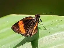 Koruthaialos sindu, the bright red velvet bob, is a butterfly belonging to the family Hesperiidae. The species was first described by father and son entomologists Cajetan and Rudolf Felder in 1860.[2]