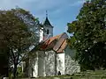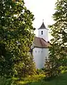 The Church of Saint George (Kostol svätého Juraja) is a simple one-nave church of pre-romanesque origin with later romanesque, baroque and modern extensions. It lies on the hill in the eastern part of the village. In 1960, the church acquired interest of experts after the discovery of medieval paintings and further research led to dating to the period before the second half of the 11th century.[1] Subsequently, the church had been referenced in literature for decades as an oldest remaining sacral building in Slovakia.[1] After breakthrough discoveries in Kopčany and revised dating of Church of St. Margaret of Antioch, a revised archeological and artistic research have been done also in Kostoľany pod Tribečom.