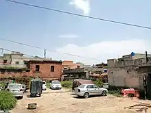 Houses surround a parking lot in the residential area of Kot Radha Kishen.