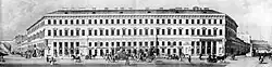 The first building at the modern location of Nevsky, 18 was constructed at the beginning of the 18th century. It was a small wooden house owned by Cornelius Cruys - the Vice Admiral of the Imperial Russian Navy and the first commander of the Russian Baltic Fleet, close associate of Peter the Great.[1][2] In 1738 the property passed to tailor Johann Neumann. He hired a famous architect Mikhail Zemtsov to build a new two story stone house. Neumann's house facade faced Moika, and the side to Nevsky Prospekt didn't even have windows. This shows that at the time, Nevsky didn't yet obtain its status of the main street in the Saint Petersburg. The house hosted the museum of wax figures - first in city, although it only existed for one year. Several boutiques operated in Neumann house. In 1743, German merchant Johann Albrecht was selling tableware made from serpentine stone, which supposedly rejected poison (considering the times, it was an attractive proposition). Frenchman Charpentier was selling powder, and Dutch merchant le-Roi had a shop "Rotterdam" selling chocolate, vanilla and ink.[1]