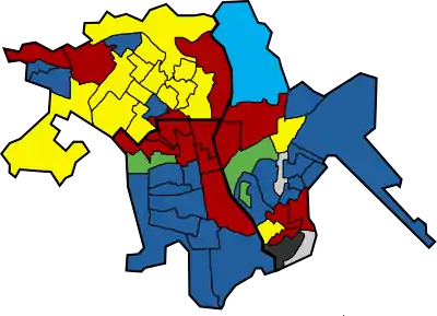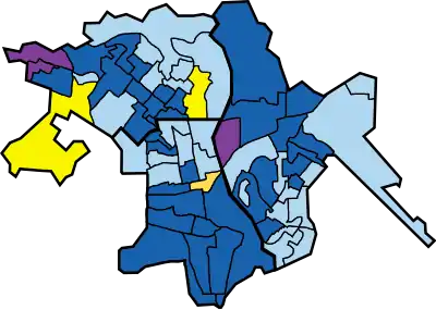 Yau was soon disqualified from the office due to her oath-taking controversy, followed by Lau Siu-lai who was also disqualified for her oath-taking manner. Two by-elections were held in March and November 2018 where pro-Beijing candidates Vincent Cheng of the DAB and independent Chan Hoi-yan surprisingly both beat the pro-democracy candidates, first times pro-Beijing camp won a majority in a direct election in more than 20 years.[5][6] Chan, however, was unseated in 2020, as the court viewed Lau Siu-lai's disqualification from running in the November 2018 by-election was unlawful.[7]