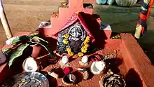 Koya practice marriage after maturity, and infant marriage is not practiced. The bride's maternal uncle has the deciding factor in the match, and cross-cousin marriages are permitted and common. Usually a wealthy groom will have no issues in finding a bride, but if they are poor enough, they can bribe the village headman to allow them to capture the bride. In the most simple Koya wedding ceremony, the bride bends her head and the groom leans over her, while water is poured on the husband's head by friends. Once the water has drained off the bride's head, they are said to be man and wife. They then drink milk, eat rice, and walk around a mound of earth organised under a pandal. They then get elders' blessings and go to their new home.[7]