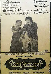 Kozhi Koovuthu (Tamil pronunciation: [koːɭi] transl.The chicken is clucking) is a 1982 Indian Tamil-language romantic musical film[1] written and directed by Gangai Amaran in his debut. The film stars Prabhu, Suresh, Smitha and Viji in her acting debut.[2] The film has music by Ilaiyaraaja, cinematography by P. S. Nivas, editing by B. Lenin, and was released on 25 December 1982.[3] The film was remade in Telugu as Veerabhadrudu (1984).