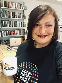 In 2013, Garina was elected as chairman of the board of Mozaīka, succeeding Linda Freimane.[2][4] She served as the Latvian representative for both Baltic Pride and EuroPride in 2015.[1] That year, Mozaīka was successful in its bid for EuroPride to be held in Riga.[7] The event was planning was co-chaired by Garina and Kaspars Zālītis. They were able to negotiate holding the parade on Brivibas Iela (Freedom Street), a main boulevard which marchers had previously been denied permission to use for other Pride events.[8] The success of the event, led to Garina's election to head the European Pride Organizers Association, a post she continued to hold in 2022.[9][10] In 2020, because of the COVID-19 pandemic, Garina as head of the European Pride Organizers Association, and in conjunction with InterPride, created a virtual Global Pride event to allow virtual attendance.[11]