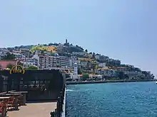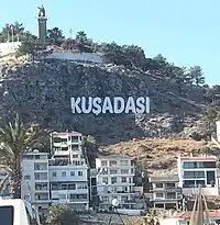 Kuşadası (pronounced [ˈkuʃadasɯ]) is a municipality and district of Aydın Province, Turkey.[2] Its area is 265 km2,[3] and its population is 130,835 (2022).[1] It is a large resort town on the Aegean coast. Kuşadası is 95 km (59 mi) south of İzmir, and about 60 km (37 mi) west of Aydın. The municipality's primary industry is tourism. The mayor of the district is Ömer Günel.[4]