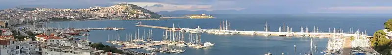 Panoramic view of the town center and port of Kuşadası