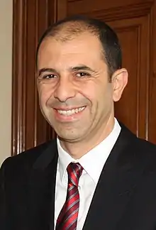 Kudret Özersay (born 16 December 1973) is a Turkish Cypriot academic, diplomat and politician. A scholar in international politics by profession, he served in the negotiations to solve the Cyprus dispute between 2002 and 2012 and in 2014. He was the Special Representative of the President of Northern Cyprus between 2010 and 2012 and again in 2014. He established and led the Toparlanıyoruz Movement and is one of the founders and the current leader of People's Party.