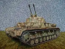The Kugelblitz combined the chassis and basic superstructure of the Panzer IV tank with a newly designed oscillating turret. This turret was fully enclosed, with overhead protection and 360° traverse. Mass production was planned, but never happened due to the disruption by Allied bombing efforts.[2]