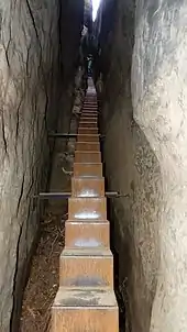 The Kuhstall (Czech: Kraví hora) is the second largest natural arch in the Elbe Sandstone Mountains after the Pravčická brána. It is located on the Neuer Wildenstein, a 337 m high rock outcrop in the hinterland of Saxon Switzerland, south of the Lichtenhain Waterfall and above the Kirnitzsch valley. It is crowned by the 15th-century castle of Wildenstein. The arch is 11 metres high, 17 metres wide and 24 metres deep.