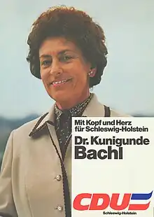 - 1 2 3 4 5 6 7 8 9 10 11 12 "Bachl, Kunigunde Dr. med". Landtag of Schleswig-Holstein. Archived from the original on 2016-12-19. Retrieved 2023-07-24.