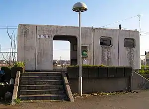 Although the Yakujin Station were named Kunikane Station between 1913-1916, the station was renamed when this station opened.[1] The ruins of the station was demolished in 2009, a year after the line was abandoned.