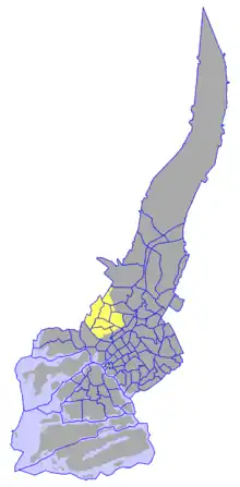 The ward consists of seven districts. Four of them are divided with other wards.