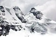 Kunturiri (Aymara kunturi condor,[2] -(i)ri a suffix, Hispanicized spelling Condoriri) is a mountain in the Cordillera Real of Bolivia, about 5,648 metres (18,530 ft) high. It is also the name of the whole massif.[3] Kunturiri is located in the La Paz Department, Los Andes Province, Pukarani Municipality,[4] southeast of Chachakumani and northwest of Huayna Potosí.