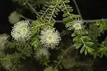 - 1 2 3 Toelken, Helmut R. (2016). "Revision of Kunzea (Myrtaceae). 2. Subgenera Angasomyrtus and Salisia from Western Australia and subgenera Kunzea and Niviferae (sections Platyphyllae and Pallidiflorae) from eastern Australia" (PDF). Journal of the Adelaide Botanic Gardens. 29: 124–125. Retrieved 30 November 2017.